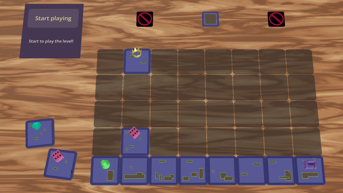 The goal is to place tiles each turn to make it to the tile at the top. Collect some power-ups to make your journey easier (or harder).